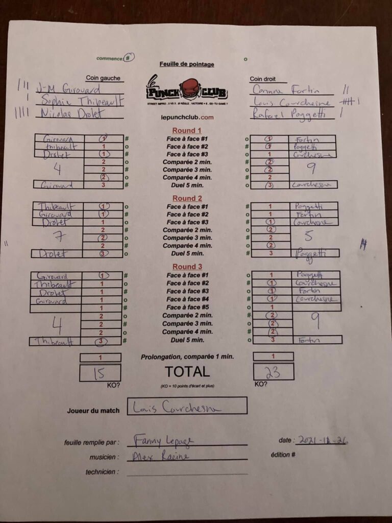 Victoire de FORTIN – COURCHESNE – POGGETTI par la marque de 23 à 15